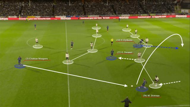 阿森纳的这些直传,许多是中距离或长距离的过顶球,策应球员只消拿到球就不错直扑对方门前。枪手今夏新援哲凯赖什是个勤于跑动、可爱在肋部穿插的中锋。这匡助阿森纳建立了一个本赛季的常见套路:将球送到右边路,此处的球员一个斜线过顶送给正在插向死后的哲凯赖什。