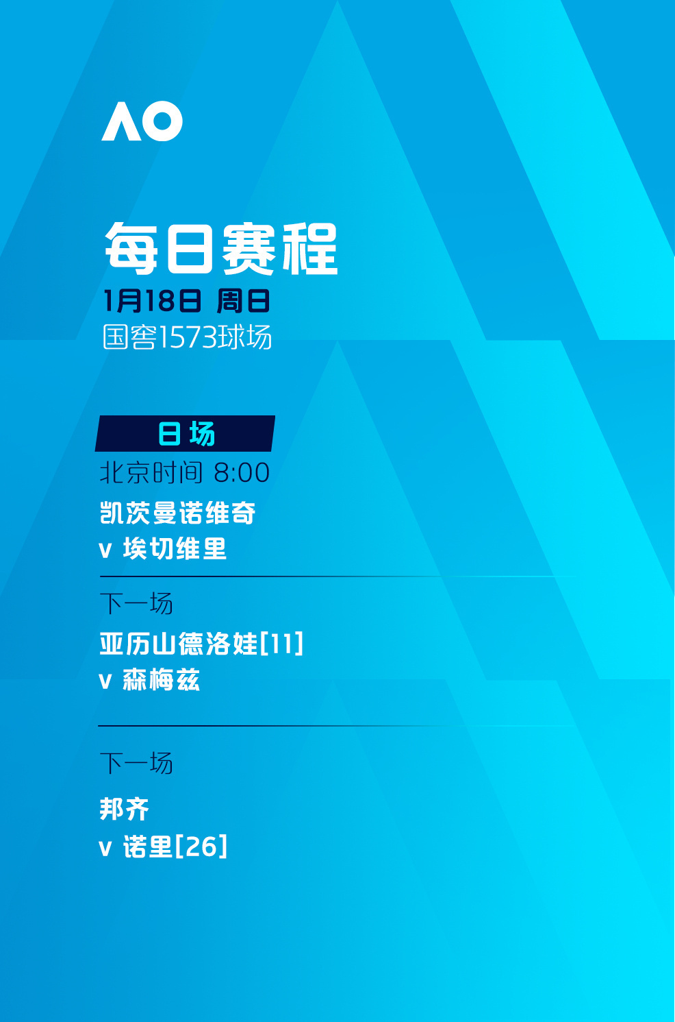 2026年澳大利亚网球公开赛正赛当天讲求开打体育集锦,赛事将于1月18日至2月1日在墨尔本公园举行。