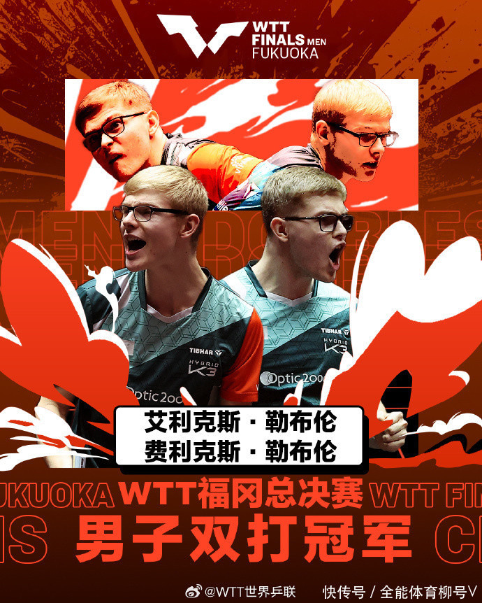 北京时刻11月24日音问,2024级WTT福冈总决赛陆续进行。男双决赛中,法国“眼镜侠”勒布伦昆仲组合A-勒布伦/F-勒布伦,以3-2绝杀日本组合户上隼辅/篠塚大登夺得冠军。1/4决赛体育赛事直播,他们以3-1逆转日本组合张本智和/松岛辉空。