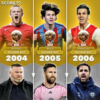 2004年金童奖:鲁尼,现年39岁。2021年退役,退役后握教了4家俱乐部,均以失败告终,目下失业在家。