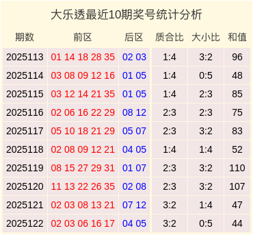 大乐透2025122期开奖,本期奖号:前区02、03、06、16、17,后区04、05。其中前区奖号质合比为3:2,大小比为0:5,和值为44。