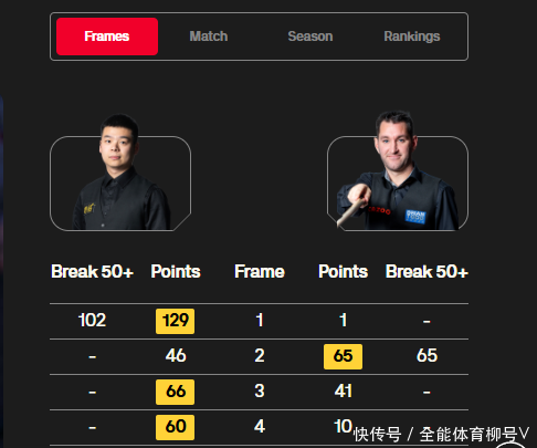 第三局,佩奇通过零敲碎打,62-37胜出,2-1再次超越,并赢得赛点。第四局,莫得退路的庞俊旭张开刚烈反击,他打出单杆56分、61-24补救赛点,比分追成2-2,两边回到归并谈跑。