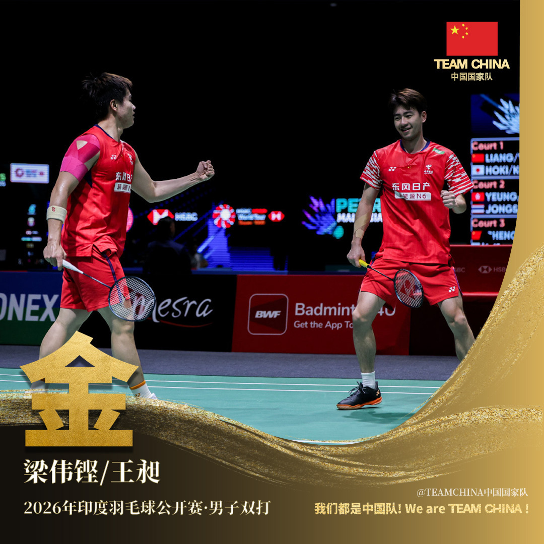 刚刚落拓的2026年印度羽毛球公开赛男双决赛,梁伟铿/王昶夺得冠军!